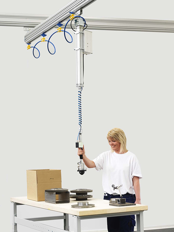 Balanceo neumático para manipulación ligera y repetitiva. El Mechline Pro™ es un balanceador neumático diseñado para la manipulación ergonómica de cargas livianas en estaciones de trabajo con alta frecuencia de uso. Permite al operador mover la carga de forma rápida, suave e intuitiva, acompañando el movimiento con una fuerza mínima. Es ideal para tareas repetitivas de montaje, ensamblaje y manipulación manual asistida. Con capacidad de trabajo de hasta 50 kg y una dinámica notablemente superior a los equipos eléctricos, el Mechline Pro™ es especialmente adecuado para aplicaciones de alta cadencia. Como efector final, puede integrarse con grippers para la manipulación de bolsas, cajas, autopartes, envases y otros productos, adaptándose a distintos procesos industriales.
