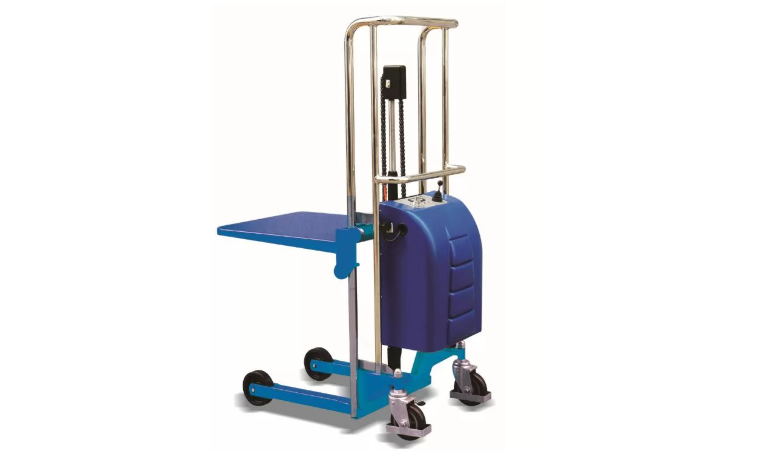 APILADOR ELECTROHIDRAULICO 400 kg: Modelo de las Series EF y EJ El Apilador Ligero de Plataforma (disponible en series EF - Horquilla Ajustable y EJ - Horquilla Fija) es la solución ideal y versátil para el manejo eficiente de materiales en entornos de trabajo amplios para cargas de hasta 400 kg. Diseñado para ser maniobrado fácilmente por una sola persona incluso en espacios reducidos, este equipo es perfecto para levantar, transportar y apilar cargas en oficinas, almacenes, tiendas y hospitales. Características: Doble Funcionalidad: Combina la eficiencia de un apilador eléctrico (con batería de alta calidad) para elevación de cargas y la flexibilidad de un apilador manual (con bomba hidráulica de accionamiento a pie). Movilidad Superior: Equipado con ruedas giratorias de poliuretano de 5" con freno y ruedas de carga fenólicas de 3" que protegen el suelo y facilitan el desplazamiento. Diseño Robusto: Construcción de acero duradero con rieles y asas cromados para garantizar años de servicio confiable. Alta Eficiencia: La capacidad de elevar y bajar cargas con fuente de alimentación mejora drásticamente la eficiencia en operaciones de carga y apilamiento.