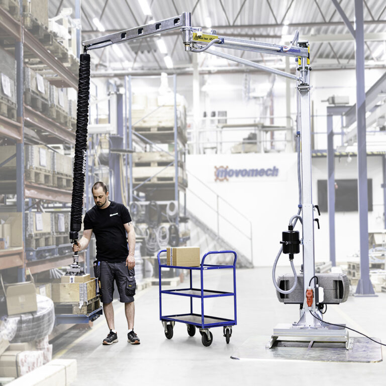 Easycrane™ es una serie de grúas de brazo articuladas flexibles con un elevador por vacío integrado en el brazo exterior del brazo: ¡una estación de trabajo completa para un levantamiento rápido y sencillo! Easycrane™ es un dispositivo de elevación intuitivo y fácil de usar para una elevación rápida y sencilla. Easycrane™ consiste en una grúa de pluma articulada flexible con un elevador por vacío integrado en el brazo de pluma exterior. Con la ayuda de una variedad de pies de succión, puede levantar cargas de diferentes tamaños, formas y pesos. Adaptable a la mayoría de los lugares de trabajo Con un alcance generoso y un pilar de piso de altura ajustable, se puede adaptar a la mayoría de los lugares de trabajo. Agregue una plataforma móvil y podrá mover fácilmente Easycrane™ entre diferentes estaciones de trabajo con una simple transpaleta manual. Levantar varios objetos Las aplicaciones de elevación comunes son cajas de cartón, sacos, paneles, barriles, muebles y más. Easycrane™ ¡ofrece muchas ventajas!
