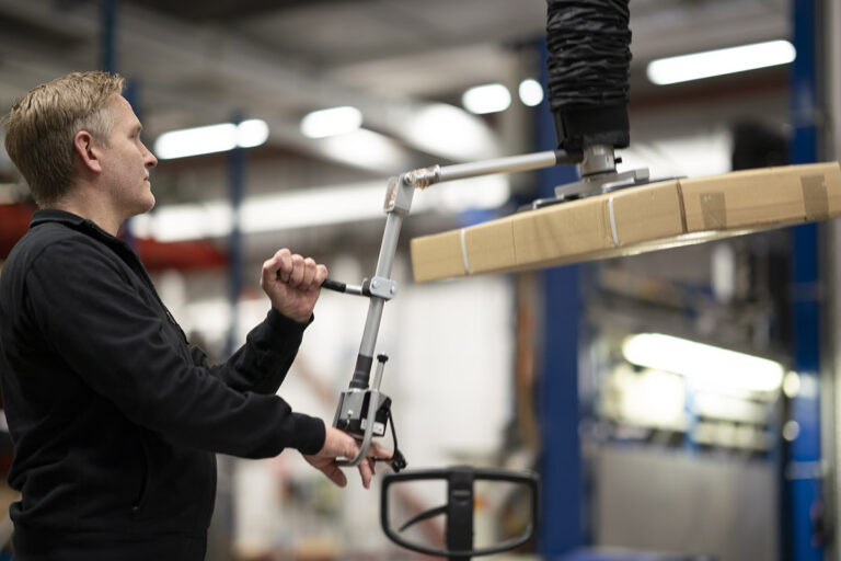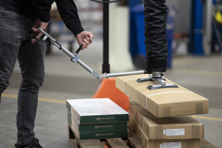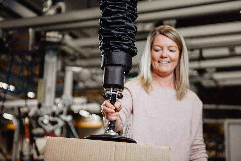 Vacuhand Pro™ es un elevador por vacío eficaz para manipular cargas de hasta 250 kg. El elevador se maneja con un asa para operar con las dos manos y permite manipular de forma fácil y eficiente sacos, cajas de cartón y material en hojas.