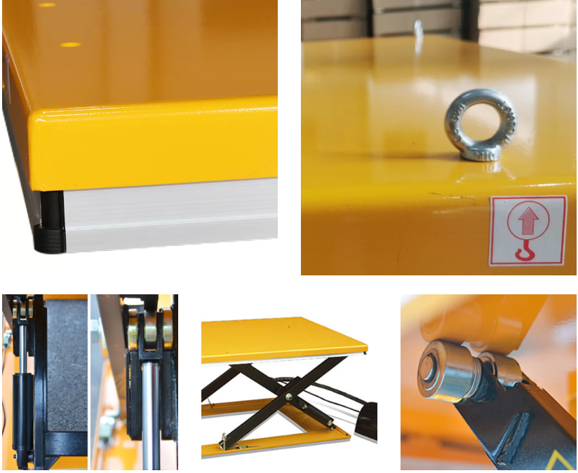 PLATAFORMA ELEVADORA ELECTROHIDRÁULICA: Modelo HW1001-1008 Mesa elevadora serie HW con estación de bombeo hidráulica de alta calidad hace que la elevación sea estable y potente. El dispositivo de barra de seguridad se coloca debajo de la plataforma, cuando encuentra obstáculos debajo del tablero, se detiene para garantizar la seguridad y con función de protección de sobrecarga. El sistema hidráulico está equipado con una válvula a prueba de roturas para evitar que la plataforma se caiga rápidamente en caso de fallas en la tubería de aceite. Carga máxima de 2000 Kg. Altura máxima 900/1300 mm, altura mínima 205/240 mm. Placa de elevación desde los 1300 x 820 mm hasta 1700 x 1500 mm. Tensión 380 Volts.