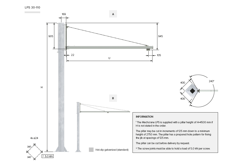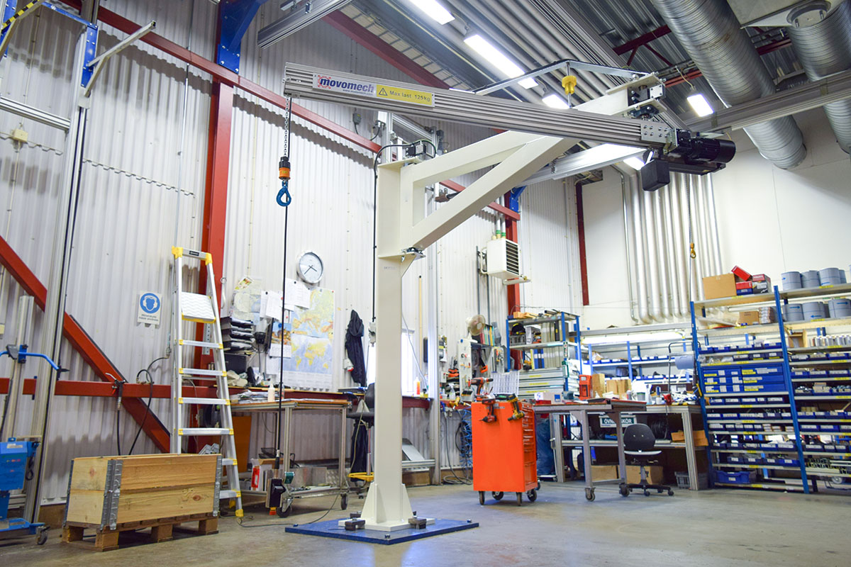 Las grúas bandera montadas en pilares LPS/APS Mechcrane™ brindan la oportunidad de instalar equipos de elevación ergonómicos en las estaciones de trabajo. Aluminio ligero y resistente Las grúas tipo pluma de columna de Movomech están equipadas con pilares rígidos de acero pintado y brazos de pluma fabricados con perfiles de aluminio resistentes y ligeros de la gama de sistemas de grúa Mechrail™. El brazo de la grúa está equipado con un carro de aluminio estable y de fácil desplazamiento, equipado con rodamientos de rueda de alta calidad.